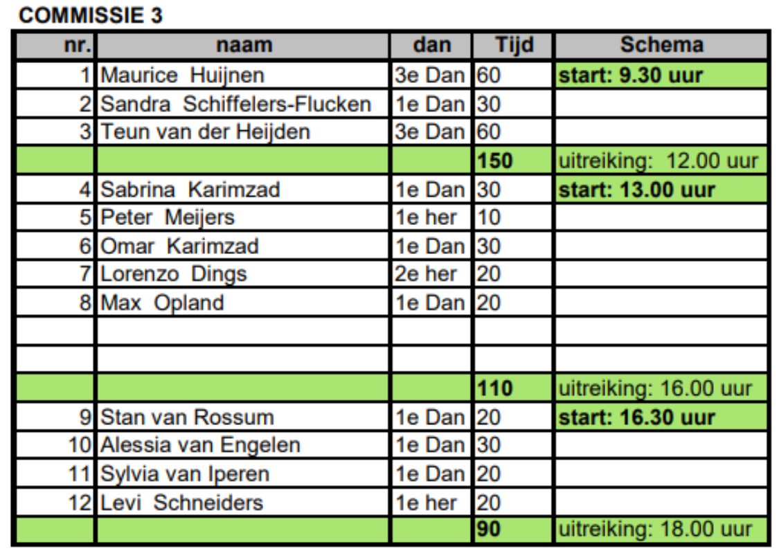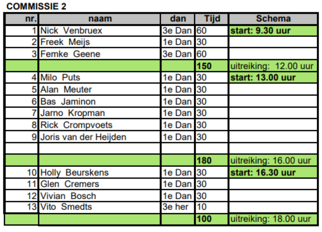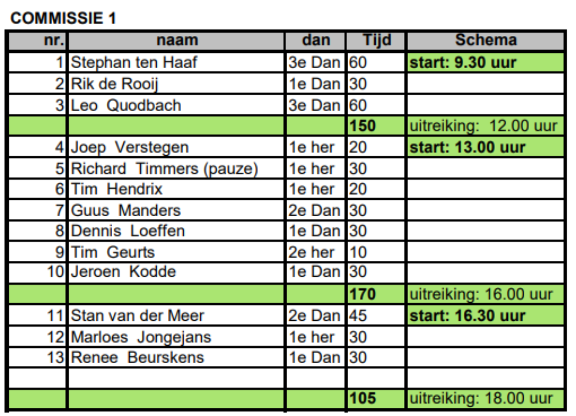 We starten om 9.30 uur met de examens. Dit jaar wordt er in kleine groepen gewerkt bijgevoegd kun je zien in welke groep je zit.